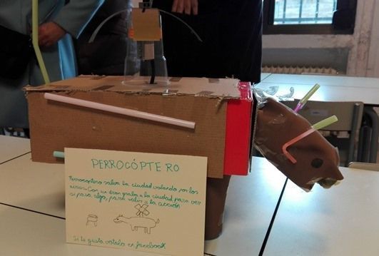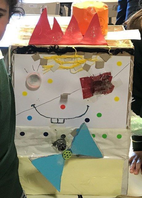 Los alumnos de la extraescolar de robótica han estado elaborando unos robots con material reciclado a los que han introducido mecanismos y sensores programados previamente para hacerlos funcionar.