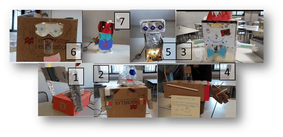 Proyecto 1 Papeleitor, Proyecto 2 Robot Vengador, Proyecto 3 Bob empresario, Proyecto 4 Perrocóptero, Proyecto 5 Robot Pepe Luis, Proyecto 6 Robot Animador, Proyecto 7 Robot Firman.