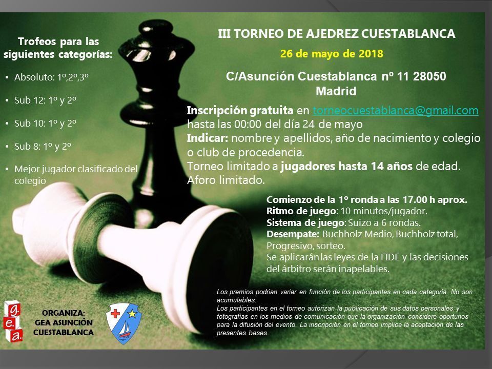 Hoy tiene lugar en el colegio lo que ya viene siendo una tradición: el torneo de ajedrez. No deja de ser otra fiesta en la que participan niños de varios colegios de Madrid.
